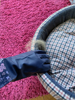 シャーシャー言われつつも、時間に余裕がある休日は、猫ベッドの抜け毛掃除。